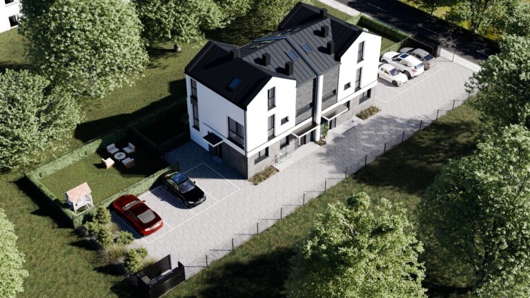 Każdy apartament dysponuje własnym ogrodem przydomowym o bardzo dobrym nasłonecznieniu oraz znakomicie doświetlonym salonem z widokiem na zieleń.